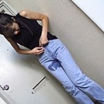 相当おしっこを我慢していたのかM字の格好の股間から大量のオシッコを豪快に噴射する!