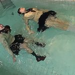 冬服のままで浮力競争。