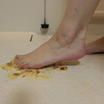 より踏みやすくするために、ブロックの上で踏んづけてもらいました。