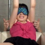 模様が入った黒いパンストを履いた女の子が座った状態で拘束され、脚を集中的にくすぐられます。
