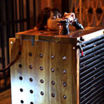 この時、ミイラとなる女性は裸体でも結構ですが、今回のようにエナメルキャットスーツを着用させますと、身体への締め付け感や閉塞感が増しますのでお勧めです。